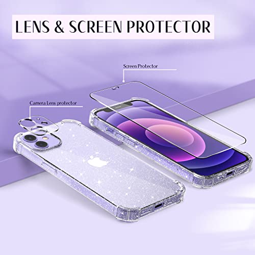 Guscase Cover Compatibile con iPhone 12, con 3 Pellicola Protettiva in Vetro Temperato & 3 Pellicola Protezione Fotocamera, Custodia Glitter Trasparente Silicone Morbido, Antiurto Graffio TPU Case