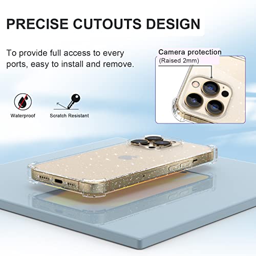 Guscase Cover Compatibile con iPhone 14 Pro Max, con 3 Pellicola Protettiva in Vetro Temperato & 3 Pellicola Protezione Fotocamera, Custodia Glitter Trasparente Silicone Morbido, Antiurto TPU Case