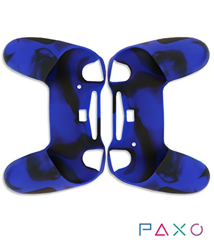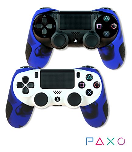 2 X gusci protettivi in silicone Paxo per joystick PS4, + 4 cappucci protettivi per pollici in silicone, manicotti per controller PS4 blu/nero