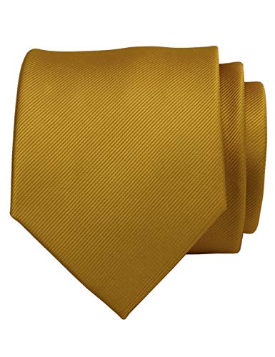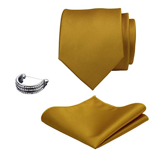 Gusleson 8 cm, tinta unita, cravatta, tasca quadrata e cravatta con chiusura a collare per uomo + confezione regalo, Oldgold con chiusura in argento, Medium