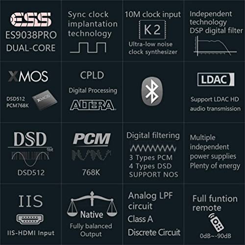 Gustard X26 Pro MQA DAC, Full Balanced Dual ES9038PRO XMOS XU216 DSD512 PCM768kHz DAC, K2 clock Bluetooth LDAC, USB/BT/COAX/OPT/IIS Ingressi RCA/XLR Uscita, D/A Convertitori, HIFI Audio DAC (Nero)