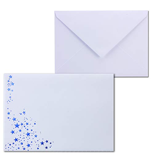 GUSTAV NEUSER - 700 buste natalizie formato C6, con motivo a stelle in rilievo blu metallizzato, 90 g/m², 114 x 162 mm, colore: Bianco