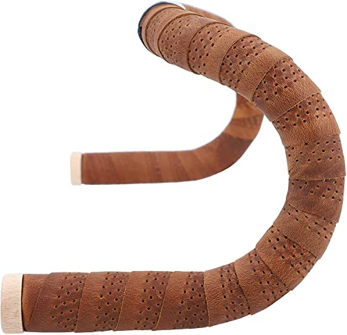 Gusti nastro manubrio in pelle - Nastro manubrio 200 cm con tappi di sughero nastro in pelle per bici da corsa nastro antiscivolo nastro per biciclette in vera pelle marrone