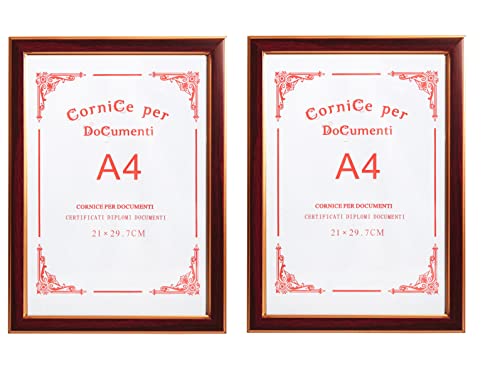 GUTEINTE Cornice A4 per Foto/Certificati 21 x 29.7 cm - Passepartout per Foto 15x20 cm Incluso, 2 Pack (Bordeaux con Oro)