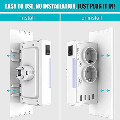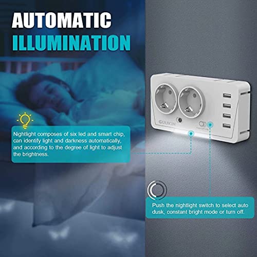 GUUKIN Multipresa con USB, con 2 Presa e 4 Porte di Ricarica Condivisa, USB da 3.1 A, Bianco [Classe di efficienza energetica A]