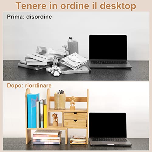 GUUSII HOME Scaffale da Scrivania per Ufficio Libreria da Scrivania Con Cassetti per Camera da Letto Libreria da Tavolo Regolabile in Bambù Piccolo Deposito per Cucina Mensola Scrivania in Piedi Libri