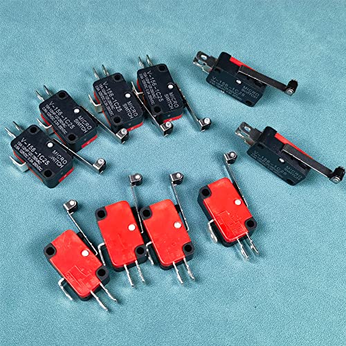 GUUZI 10pcs V-156-1C25 Micro Finecorsa con Cerniera Lunga Roller Momentary SPDT Snap Action per Arduino