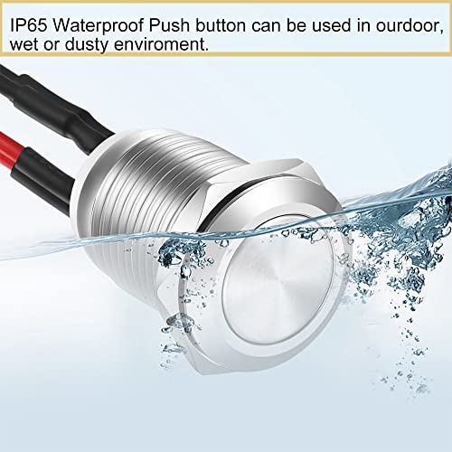 GUUZI 12pcs 12mm 2A 12V/24V/125V/250V AC Interruttore a Pulsante Momentaneo Scocca in Metallo con Precablaggio, Interruttore a Pulsante Impermeabile IP65(Testa Piatta)
