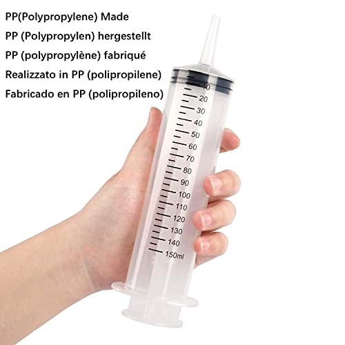 GUUZI 2 Pacchi Siringhe in Plastica Grande da 150ml con Tubo da 1,5m e 3 Pacchi Siringhe da 10ml/5ml/1ml per Laboratori Scientifici e Dispensazione di Strumenti per Siringhe di Misurazione