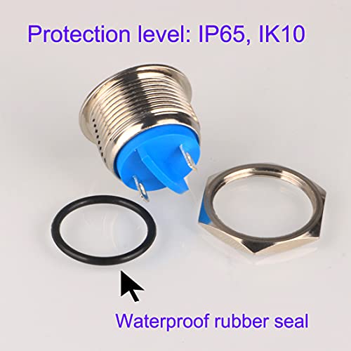 GUUZI 10 pezzi 19MM Interruttore a Pulsante in Metallo Impermeabile Momentaneo in Acciaio Inossidabile 12V 24V 36 DC 110V 250V AC 3A 1NO SPST (Superficie Sferica)