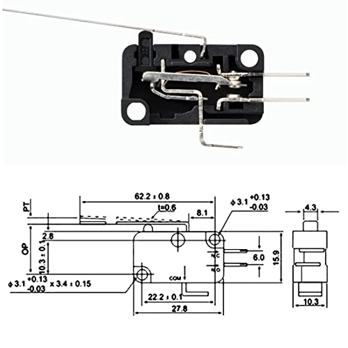 GUUZI 10 pz V-153-1C25 Momentaneo Micro Finecorsa Lungo Dritto Cerniera Braccio di Leva SPDT Interruttore A Scatto per Arduino Braccio di leva Della Cerniera Lungo e Dritto