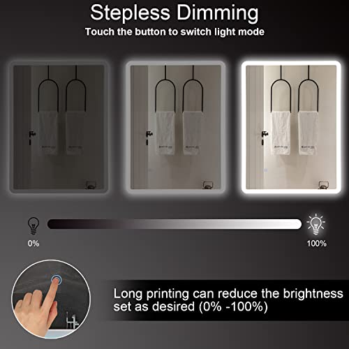 ☛【Temperatura e luminosità del colore regolabili】 Il nostro specchio da bagno adotta strisce luminose a due colori, che possono essere toccate e riconosciute in modo intelligente.Fare clic sull'interruttore tattile per impostare tre colori da 3000 K a 6500 K: luce fredda, calda e naturale. Premere a lungo l'interruttore a sfioramento per regolare la luminosità della luce dallo 0% al 100%. Le nostre luci simulano la luce solare naturale e forniscono un'illuminazione visiva confortevole.
