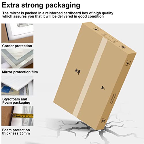 ☛【IP65 impermeabile e vetro antideflagrante da 4 mm】 Lo specchio del bagno ha superato la certificazione IP65 impermeabile e antipolvere di alta qualità e la certificazione CE. Lo specchio utilizza un vetro antideflagrante da 4 mm e i frammenti non si diffondono dopo la rottura dello specchio. Impermeabile e resistente all'umidità. Anche se utilizzato in un bagno o in una stanza umida chiusa, può garantire la sicurezza.