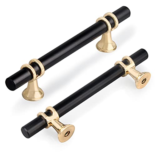GUWINA 6 Pezzi Maniglia per Mobili da Cucina Forma Barra a T 96mm, Moderni Maniglia per Porta Maniglie in Lega di Zinco per Cassetto Dell'Armadio Armadio con Viti,Nero Con Base Dorata