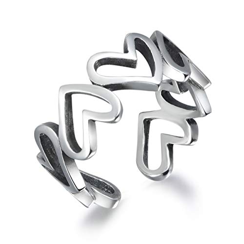 Guzhile, anello alla moda per ragazze con intarsi aperti a forma di cuore, ottimo regalo per San Valentino o per Natale, colore argento, misura regolabile