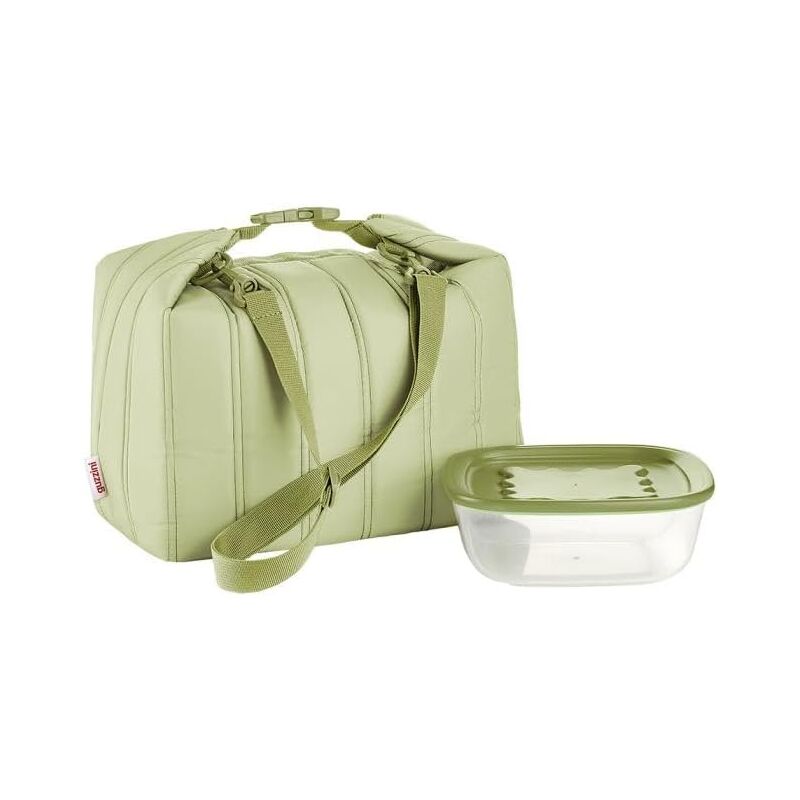 La Borsa Termica Con Contenitore 'Handy Bio' 'On The Go' Verde Avocado di Guzzini, caratterizzata da un design unico e compatto, viene venduta con contenitore ermetico, adatto al frigo e al forno a microonde, e con coperchio coordinato al colore della borsa stessa. Un alleato indispensabile per le pause pranzo di ogni giorno ma anche per pic-nic, gite in montagna o piacevoli break a bordo piscina. Caratteristiche della borsa termica: Capiente e salvaspazio Efficace isolamento Pratica da trasportare Sostenibile: Borsa realizzata in plastica riciclata 100% post-consumo;