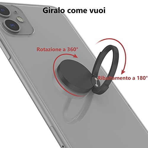GVAVIY Anello Universale Cellulare Anello Metallico Supporto Telefono Cellulari Rotazione 360° Gradi per iPhone, Samsung, Huawei Tutti Gli Smartphone e Tablet, Confezione da 2 (Nero)