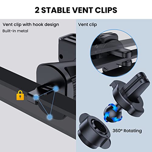 【Angolo di visione libero a 360°】 Viene fornito con 2 diverse clip di ventilazione. Il supporto si adatta alla maggior parte delle griglie di ventilazione spesse o sottili. La testa a sfera può essere ruotata liberamente di 360° e la navigazione può essere utilizzata sia in orizzontale che in verticale. È possibile impostare l'angolo di visione migliore e concentrarsi maggiormente sulla guida sicura.