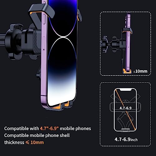 【Piede Regolabile e Compatibilità Universale】: il supporto per telefono per auto ha un supporto regolabile, la funzione non solo evita che alcuni pulsanti di accensione o volume del cellulare vengano schiacciati dal braccio di bloccaggio, ma lo rende anche ampiamente compatibile con smartphone o dispositivi elettronici da 4.7 a 6,9 pollici, come compatibile con iPhone 13 Pro Max Mini/12/11 pro max/11/XS MAX/XS/XR/X/SE, con Samsung Galaxy, con HUAWEI.
