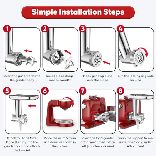 【Facile da pulire e conservare】:Questo accessorio per tritacarne non è lavabile in lavastoviglie, ma tutte le parti sono in metallo lucido, rimovibili e facili da pulire a mano. Per la pulizia si consiglia di utilizzare acqua calda e sapone (entro i 122°F).