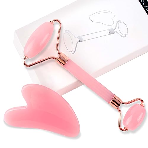 GWAWG Gua Sha e Rullo di Giada Guasha Viso Pietra Roller Massaggio Rullo per Il al Quarzo Rosa Viso Gli Occhi Collo Muscolo del Corpo Che Si Rilassa Allevia le Linee Sottili Rughe