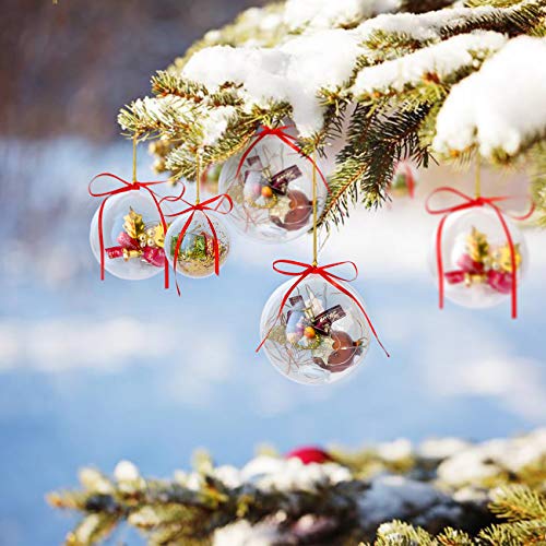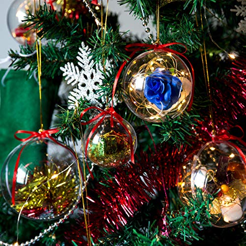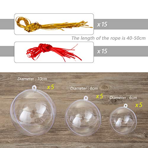 Gwhole Set di 15 Palline di Natale con 15 Corde d'oro e 15 Corde Rosse, 6cm 8cm 10cm Sfera Plastica Trasparenti Palla Palle da Natalizie Albero Apribili Decorative