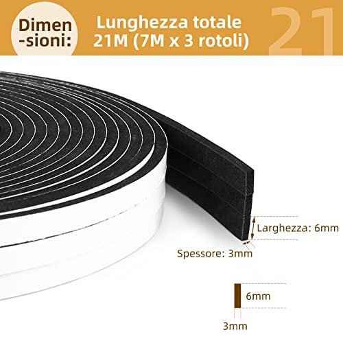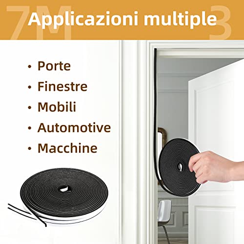 GWHOLE Paraspifferi Porta Blindata, Nastro Autoadesivo in Spugna EVA 3 Rotoli 7m Guarnizione Finestra Autoadesiva Paraspifferi Sottoporta per Anti Freddo, Rumore e Collisione Guarnizione Porta