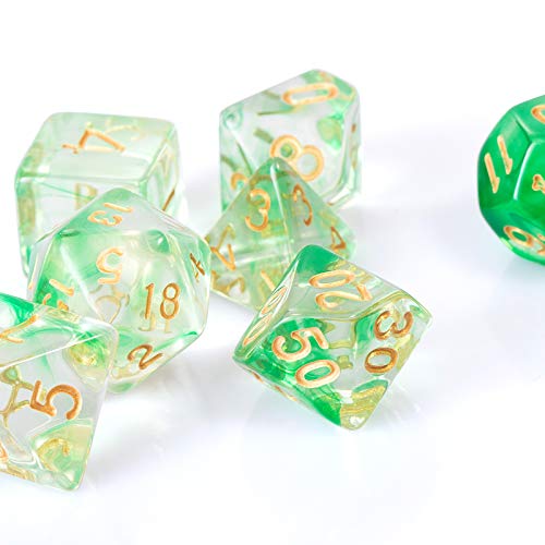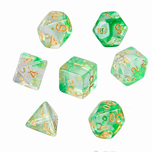 GWHOLE 7 Pezzi Dadi Poliedrici per Giochi di Ruolo con Giochi da Tavolo Dungeons And Dragons con Sacchetto Nero, Verde