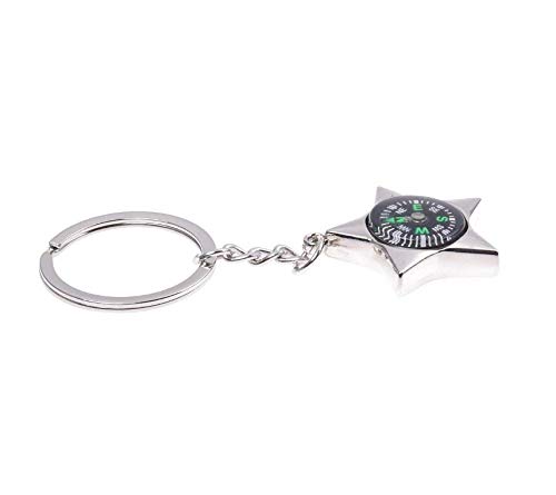 Gwill 3 pezzi stella Compass Keychain metal Compass Outdoor regalo con bussola ciondolo portachiavi per gli uomini (argento)
