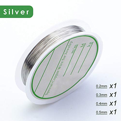 Gwolf Filo di gioielli, Filo di rame per lavorazione artigianale, filo di rame bianco per creazione di gioielli, bobina di filo di rame per artigianato, perline (4 formati, 12 rotoli)