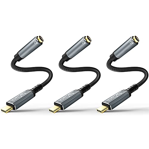 Gxfcyffs Adattatore Usb C Jack 3,5mm 3 Pezzi, Adattatore Cuffie Usb C con Chip DAC Nylongeflecht Compatibile con HUAWEI P50/40/30/Mate 40/30,SAMSUNG S21/S20/Note20/10,Pixel 5/4,Oneplus(Grigio)