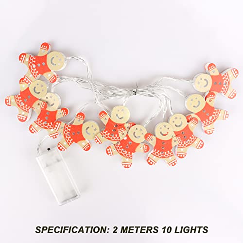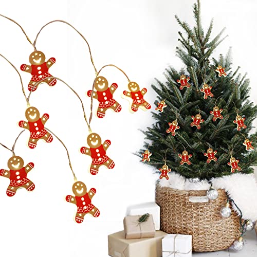 Gxhong Luci di Stringa di Natale,2M 10LED Catena Luminosa IP44 Luci di Natale Omino di Pan di Zenzero Lampada Decorativa Luci Fata LED Stringa Luci a Batteria,per Natale Decorazioni Casa