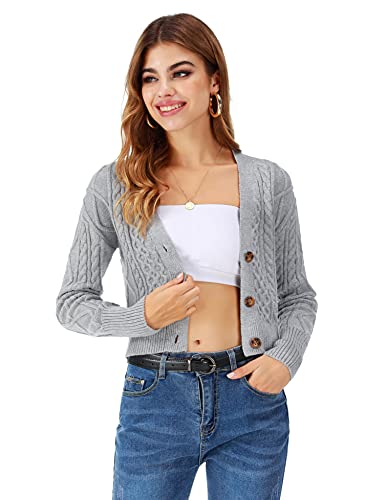 Gyabnw Cardigan Donna in Maglia Corto con Scollo a V Bolero Leggero Casual Manica Lunga con Bottone Cardigan da Maglione Elegante Primavera Autunno Top Coprispalle Tinta Unita, Grigio, XXL