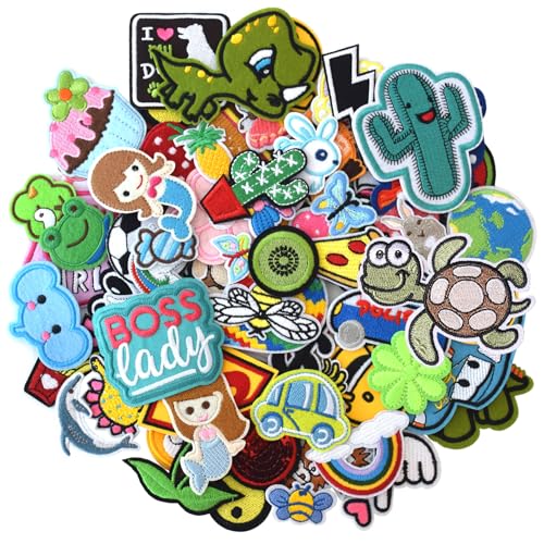 GYGYL - 80 toppe ricamate termoadesive, misure assortite, casuali, da cucire o stirare, per riparazioni o applicazioni fai da te, per giacche, jeans, pantaloni, zaini e vestiti