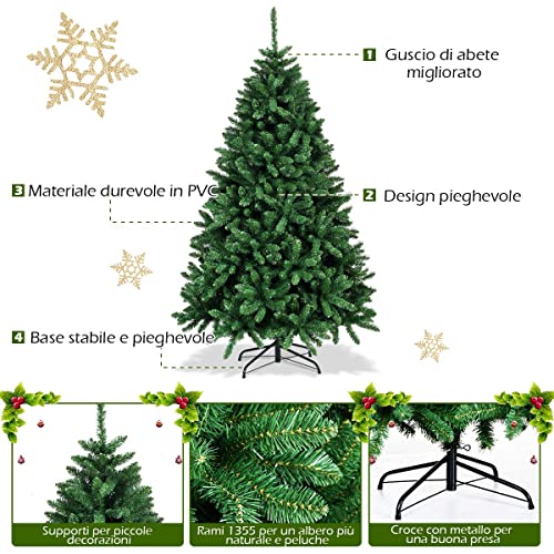 # Rami e foglie realistici e folti # L'albero di Natale artificiale dispone di 1355 / 2254/ 3594 rami folti che possono conferirgli un aspetto bello e realistico, in più, sono realizzati in PVC di buona qualità e senza tossiche né odori sgradevoli per garantire un utilizzo sicuro ed a lungo termine.