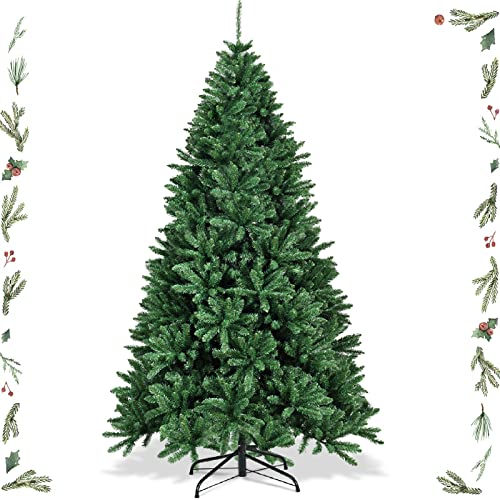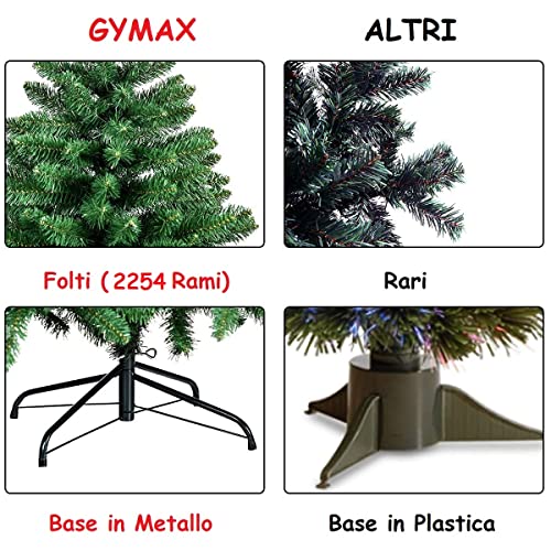 GYMAX Albero di Natale Automatico 230 cm, 2254 Rami in PVC Ignifugo, Albero Artificiale Folto e Realistico, Divisibile per Montaggio e Trasporto, Supporto in Ferro, Ideale per Interno/Esterno, Verde