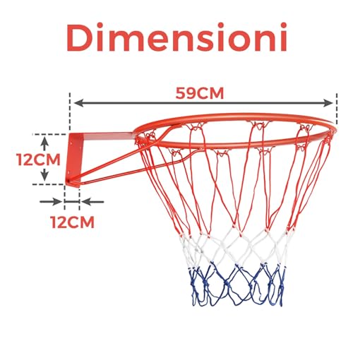 # Facile da Montare # Questo canestro da pallacanestro con rete è facile da installare alla parete o al tabellone grazie alla base solida con i fori. Usando le viti di espansione si fissa bene. Inoltre, il canestro è dotato dei ganci per infilare facilmente la maglia di nylon e fornisce un montaggio abbastanza semplice e veloce.