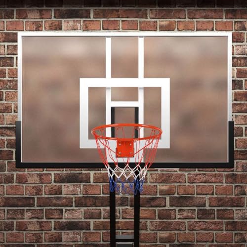 # Materiali di Alta Qualità # Il canestro da basket professionale è realizzato in acciaio robusto con la vernice antiruggine e antiusura e può resistere alle intemperie come la pioggia e il sole. La rete è in nylon di alta qualità e può essere utilizzata per una lunga durata.