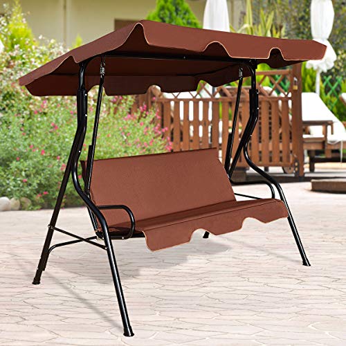 GYMAX Dondolo a 3 Posti in Acciaio, Dondolo da Esterno con Tettuccio Inclinabile e Resistente al Sole, Ideale per Giardino, Cortile e Terrazzo, 172 x 110 x 154 cm, con Portata di 240 kg (caffè)