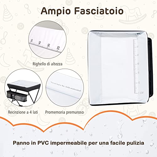 GYMAX Fasciatoio Pieghevole per Neonato, con Cestello Rete, Materiale in PVC Impermeabile, Gambe in Ferro, Telaio Stabile, 80 x 67 x 103 cm (Nero)
