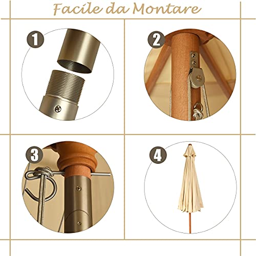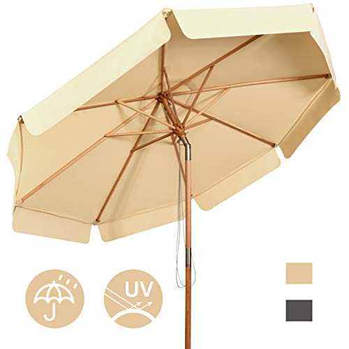 GYMAX Ombrellone da Esterno con 8 Stecche in Legno Massello, Ombrellone da Giardino Inclinabile con Copertura Impermeabile e Resistente al Sole, Ideale per Spiaggia e Terrazzo, Diametro 3 M (Beige)