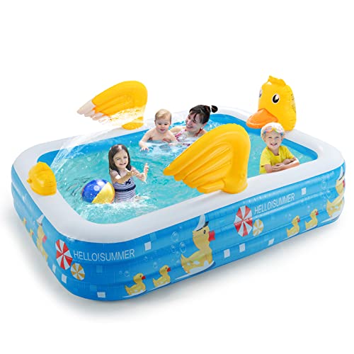 # Fantasie e motivi d'anatra # Abbiamo progettato una piscina a tema anatra! È possibile vedere la testa, le ali e soprattutto la coda dell'anatra che spruzza acqua. I dettagli unici e l'aspetto simpatico lo rendono perfetto per far giocare i bambini.