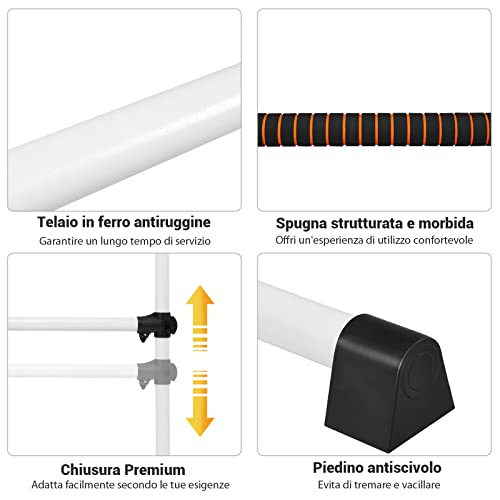 # Design regolabile in altezza # Il palo inferiore della sbarra da danza è regolabile in altezza, girando le manopole su entrambi i lati e si può regolare in base alle diverse esigenze, il che ti porta una grande comodità, tra l'altro, le manopole si possono avvitare bene per garantire un uso sicuro.