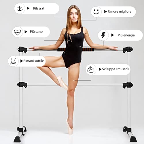 GYMAX Sbarra Danza Classica per Casa Indipendente, Barra da Balletto Doppia Portatile, Regolabile in Altezza, con Cuscinetti Antiscivolo, Diametro 38 mm 124,5 x 71 x 120 cm (Argento)