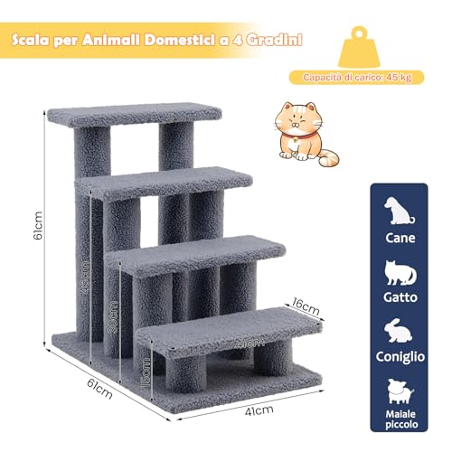 GYMAX Scaletta per Gatti a 4 Gradini, Carico 45 kg, Rivestita Morbida per Animali Domestici Robusto, 61 x 41 x 61 cm (Grigio)