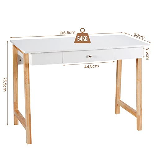 GYMAX Scrivania con Cassetto in Legno, Piano Spazioso, 4 Gambe con Traverse di Rinforzo, Stabile e Solido, Perfetto per Camera, Studio, Soggiorno, 106,5 x 50 x 75,5 cm (Naturale)