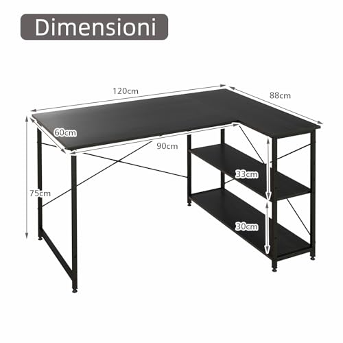 # Ampio Spazio # L'ampio piano del tavolo ti offre una comoda area di lavoro, anche se metti computer, non ti sentirai affollato e i tre ripiani sul lato possono essere utilizzati per libri, documenti, stampanti, ecc. Questa scrivania renderà sicuramente i tuoi effetti personali più ordinati e ordinati.