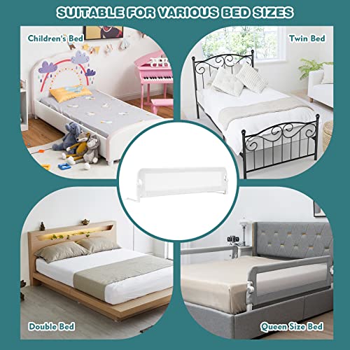 GYMAX Sponda del Letto per Bambini, Sponda del Letto Pieghevole Lunga 150cm con Cinghia di Sicurezza Regolabile, Sponda per Bambini e Neonati per Materassi Singoli, Matrimoniali (Bianco)
