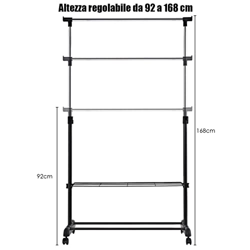 GYMAX Stand Appendiabiti da Terra con Ruote in Metallo Appendiabiti in Camera da Letto Regolabile in Altezza