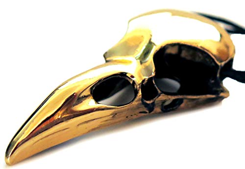 Ciondolo originale Key West GYPSY 2000 Made in USA di alta qualità scolpito ottone ciondolo 8,3 cm di altezza pesa 81 grammi, fornito con cavo cerato nero da 182,9 cm 2 mm per collana. Il teschio unico Raven Bird Skull con etichetta di garanzia 10 anni è in cima al cranio di Raven si adatta fino a 8 mm di catena) disponibile anche in argento. Fornito in sacchetto regalo di velluto.